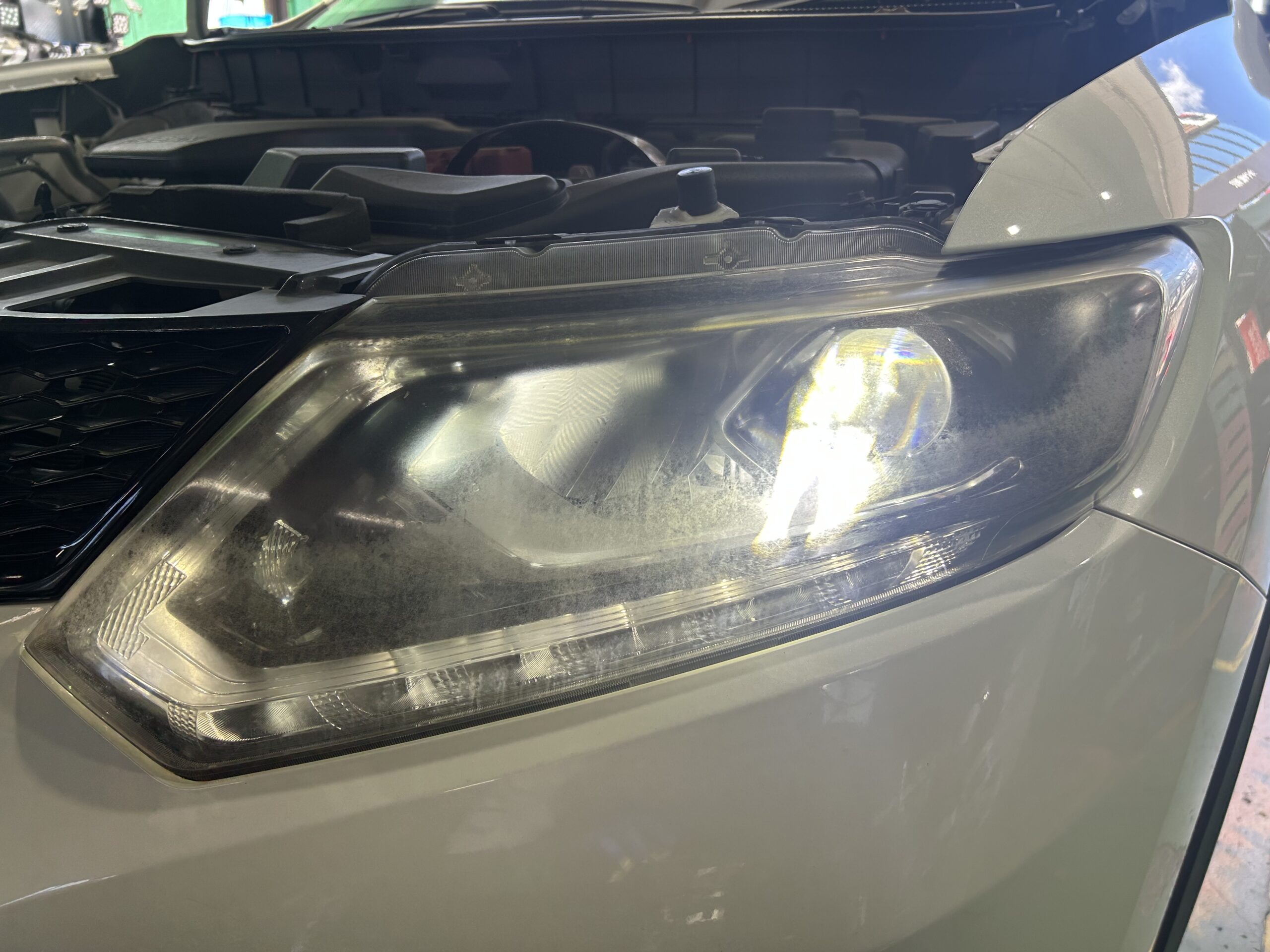 今回は日産エクストレイルのヘッドライト磨きのご用命でした。